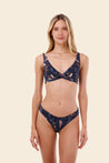 The Knotty is one of our favorite tops for bigger chests. It provides great coverage and support. It has a twist style in the front and adjustable straps on the back and tie back.